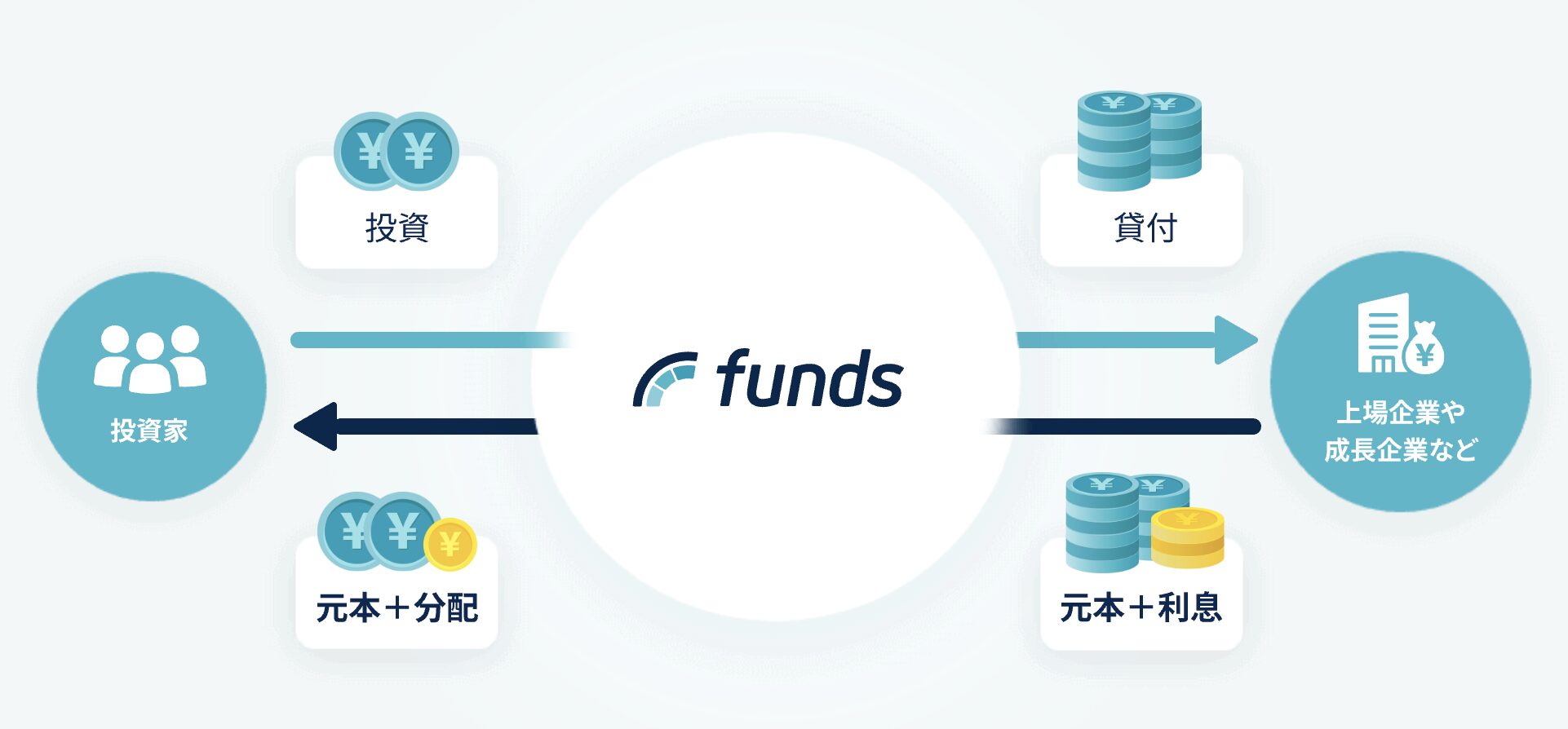 Fundsは上場企業を中心に間接的にお金を貸して、その利息(利益)を受け取ることができる資産運用サービス。