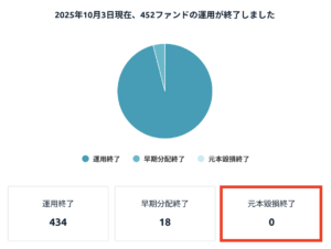 上場企業ばかりだから倒産のリスクも少なく、今まで運用してきたファンドの元本割れは「0件」だよ!