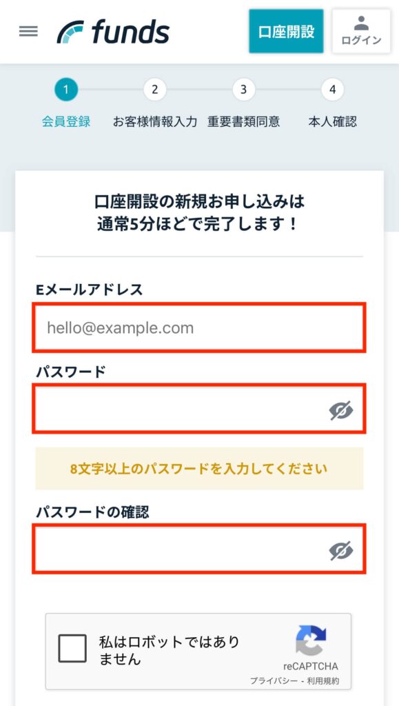 ここからはFundsの会員登録方法を画像付きで解説します。