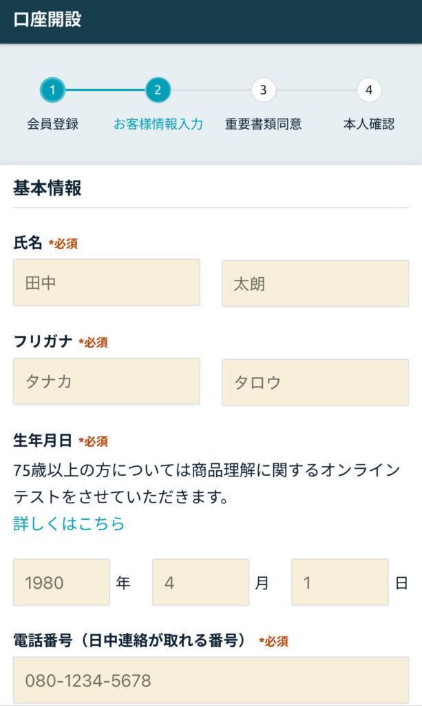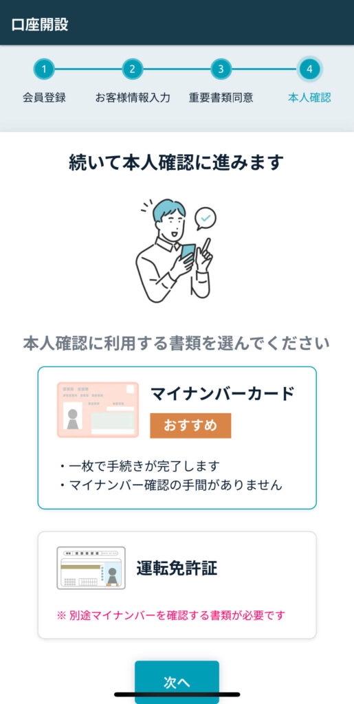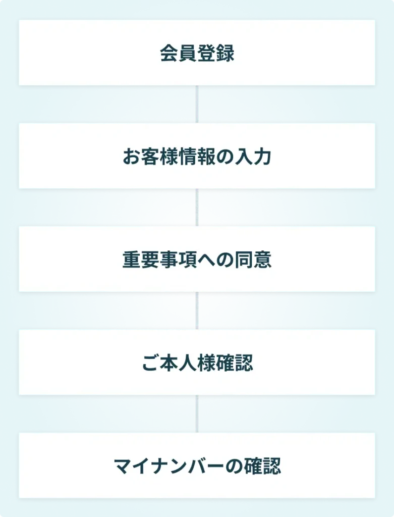 続いて、「本人確認情報の入力」「金融機関口座情報の入力」をします。