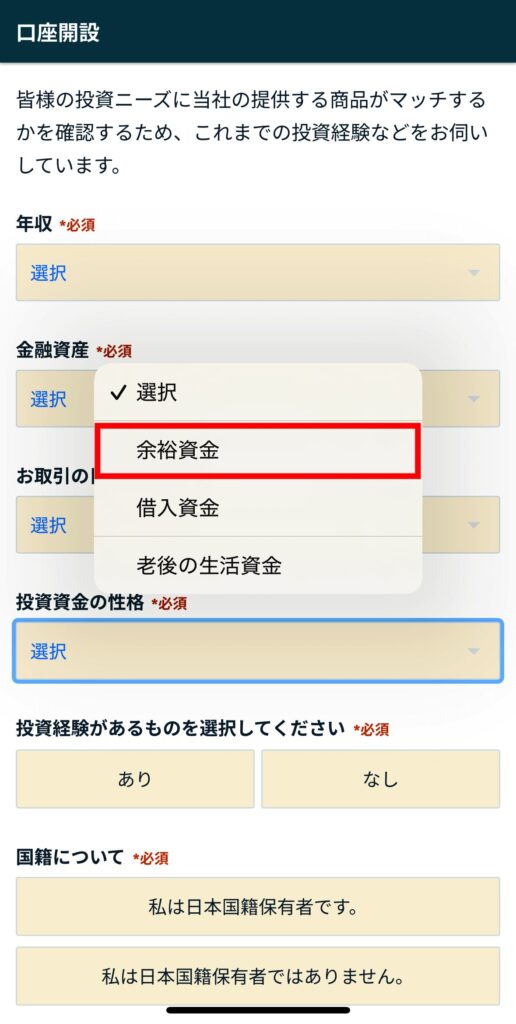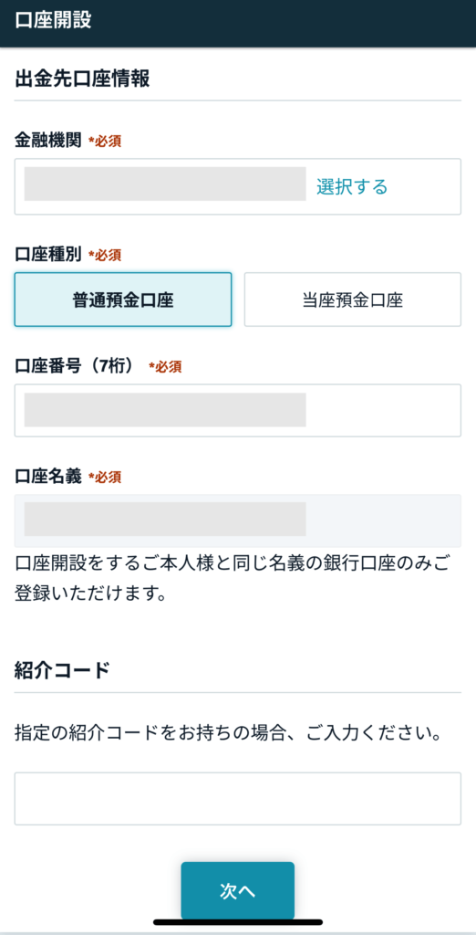 ここで入力する口座情報は、運用終了後の資金を出金するために使用します。