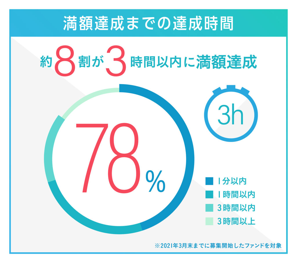抽選の場合は、約8割のファンドが3時間以内に満額達成しています。
