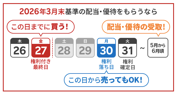 権利確定日=その日まで株を持っている人が、配当金や株主優待をもらえる基準日のこと
