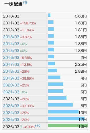 配当金は13年連続で増え続けてる!