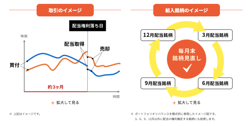 - 毎月銘柄を入れ替えて、常に配当を取りにいく