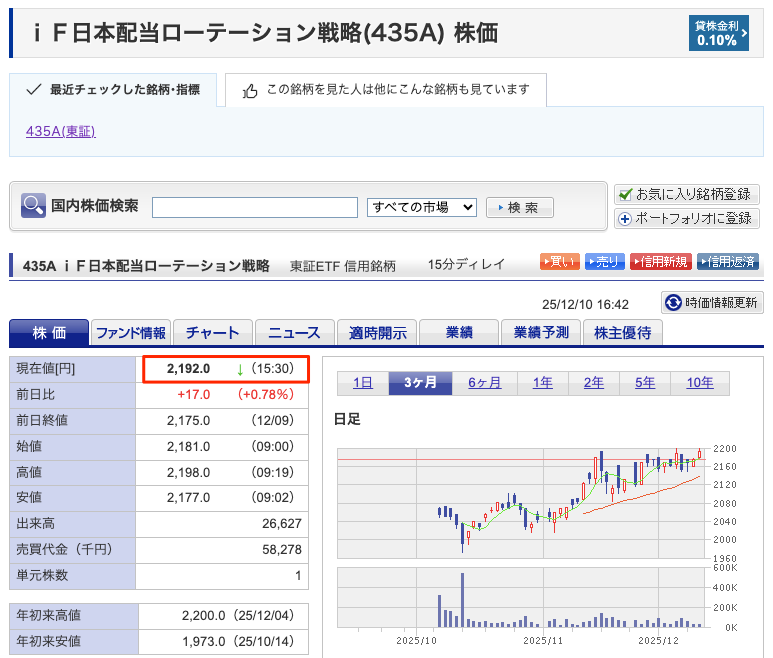 | 正式名称 | iFreeETF 日本株配当ローテーション戦略(435A) |