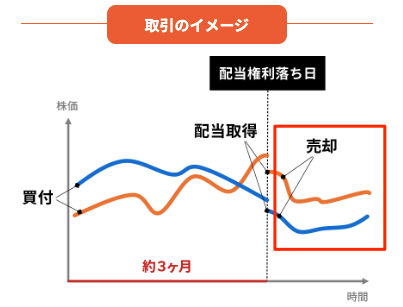 - 権利が確定したらすぐに売却し、次の3ヶ月後にはまた銘柄を選び直す