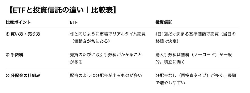 ETFはオルカンやS&P500のような投資信託とは違うのかな?