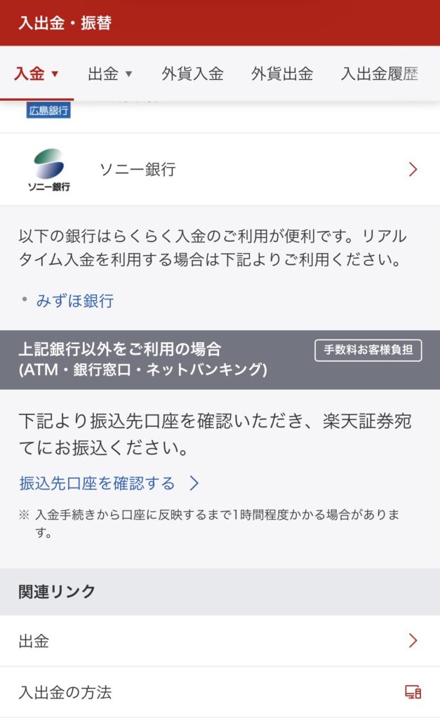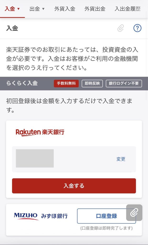 「らくらく入金」ができるのは、楽天銀行またはみずほ銀行!