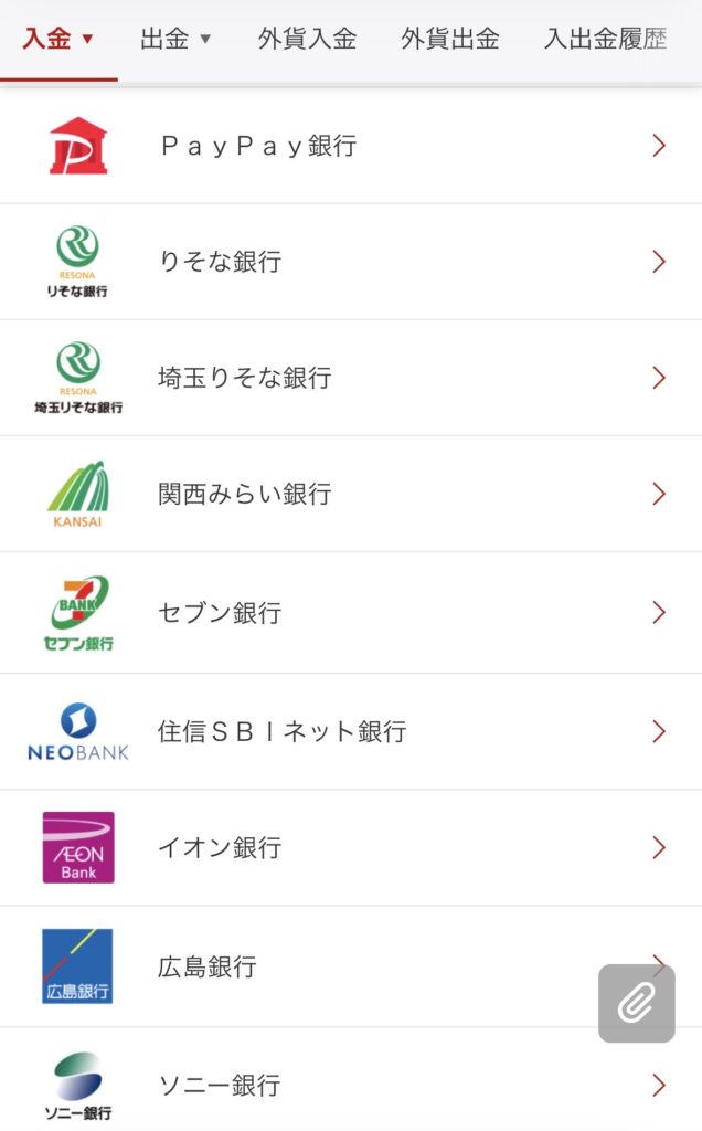 「リアルタイム入金」ができるのは以下の銀行が対象!