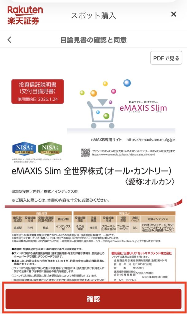2つ目の目論見書も「確認」をタップ。