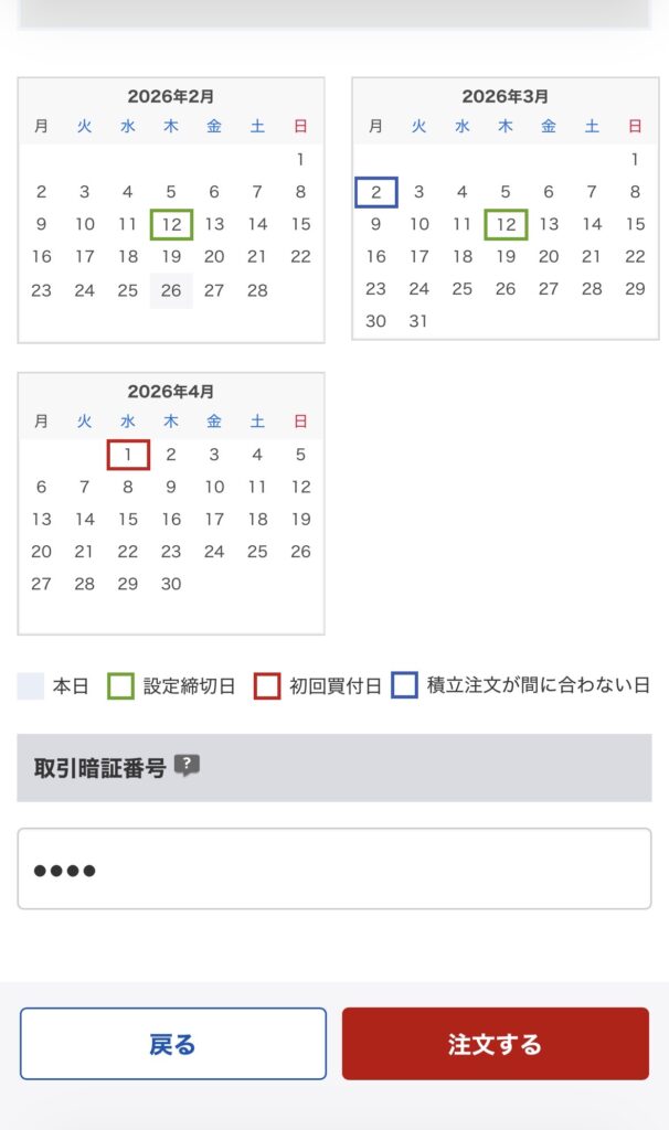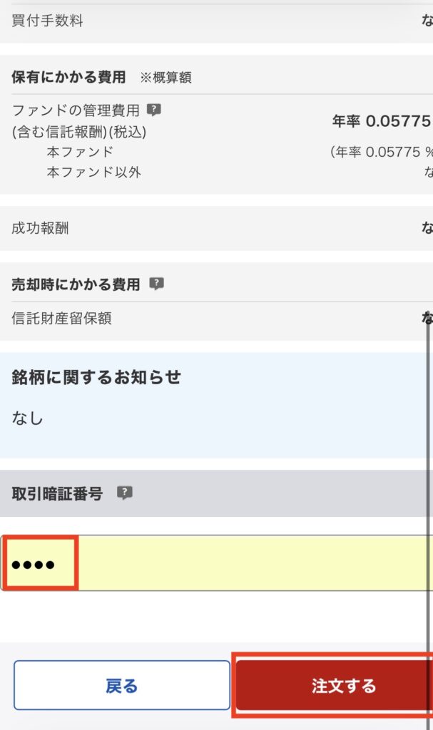 注文内容を確認して、取引暗証番号を入力し「注文する」をタップすれば完了!