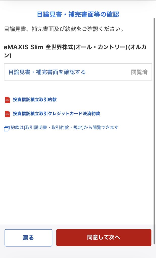 目論見書(商品の説明書)を確認したら、注文内容の確認へ